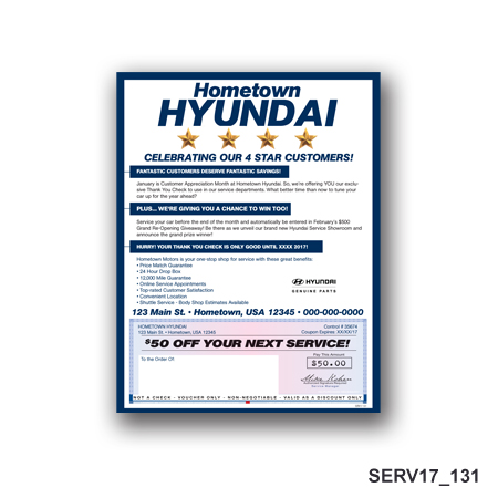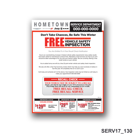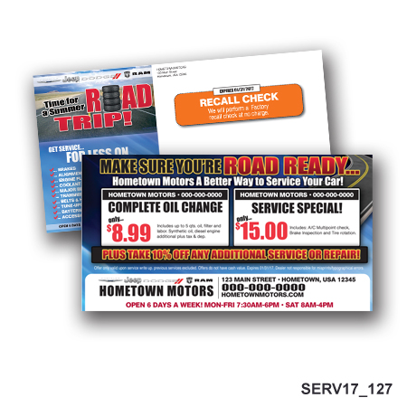 Make your customers aware of current service specials and remind them of their upcoming service checks. Using your customer database we can customize each customer’s invitation with offers that remind and encourage them to service their vehicle in the near future.
